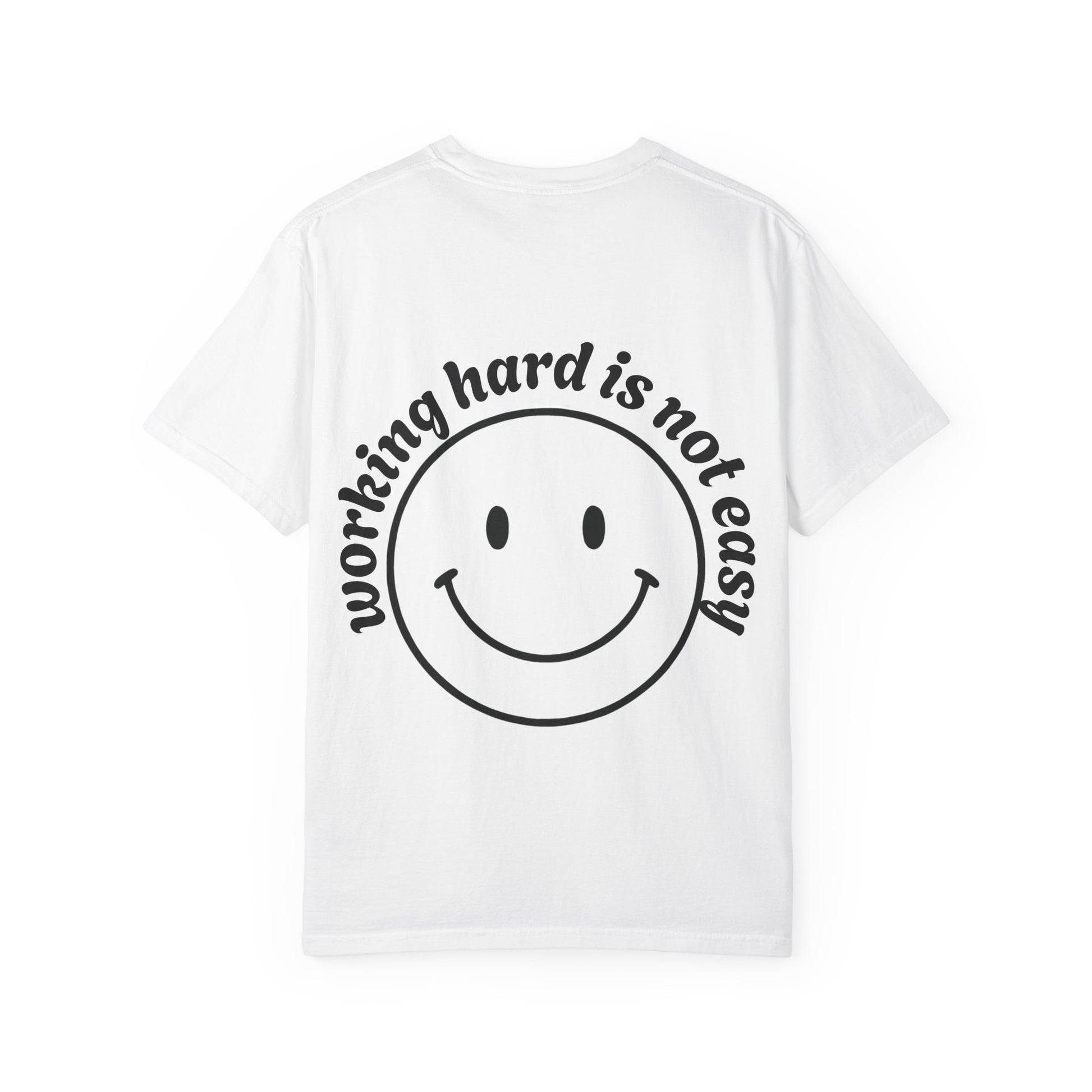 Introducing a versatile and stylish Unisex Garment-Dyed T-shirt, designed to bring a cheerful vibe to your wardrobe. This T-shirt features a playful smiley design and an inspiring message on the back, perfect for those who carry positivity in their day-to-day life. With its relaxed fit and luxurious 100% cotton fabric, this shirt is both comfortable and appealing, making it ideal for casual outings, lounging at home, or even light workouts. It's perfect for anyone who enjoys effortless style, whether you're treating yourself or gifting it to a friend. This shirt is great for holidays, birthdays, or just as a way to spread happiness all year round, ensuring you look good while embracing a positive mindset.